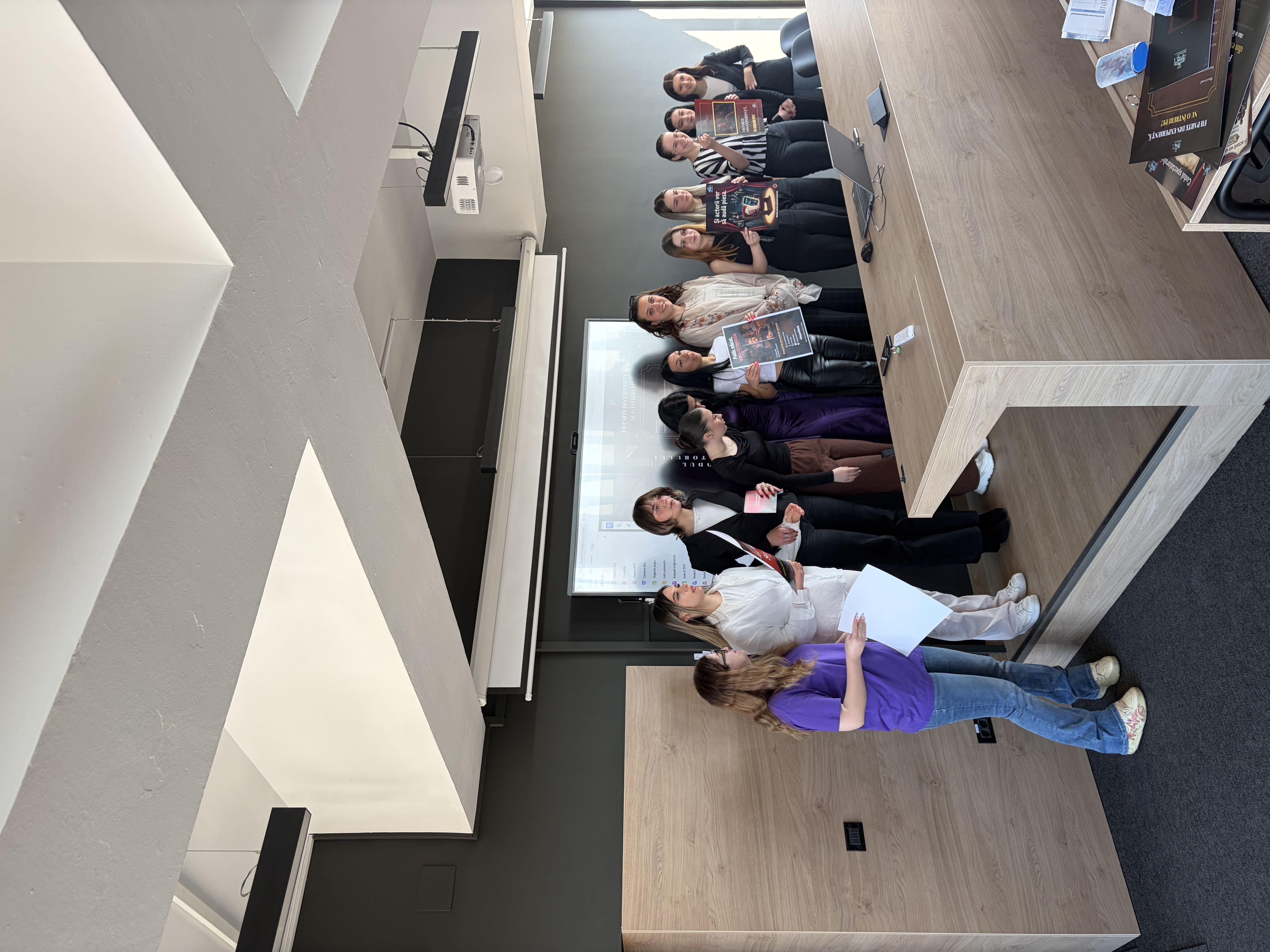 Organizați în câte patru grupe pentru fiecare tip de instituție de spectacol, studenții au parcurs întreg procesul unui proiect de relații publice real: de la analiza publicului-țintă și construirea mesajului central, până la producerea materialelor vizuale — afișe, panouri, flyere — și a conținutului pentru social media. Prezentările au luat forma unui pitch profesionist, în care fiecare grupă și-a argumentat strategia și alegerile creative în fața unui juriu neobișnuit: studenții de anul I ai Facultății de Științe ale Comunicării, care au votat proiectele preferate.