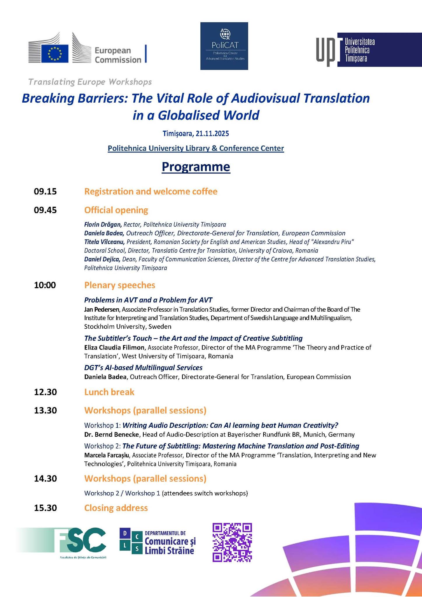 - International conference: Translating Europe Workshops - Breaking Barriers: The Vital Role of Audiovisual Translation in a Globalised World